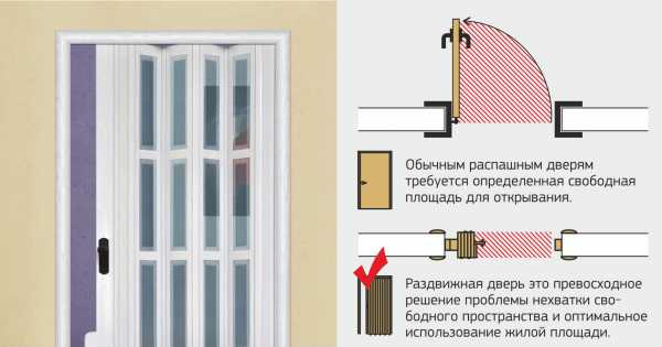 Межкомнатная раздвижная дверь гармошка — это удобная конструкция, основное полотно разделено на несколько полосок, они не сдвигаются в паковочное место, а складываются гармошкой (см. фото). Стоит сказать, что данный тип дверей не занимает пространство стены, и занимает минимум места по обе стороны от дверного проема. Складывающиеся двери могут использоваться как в узком проеме, так и выполнять функцию «подвижной» стены. Ширина дверного проема может изменяться, от маленькой щели, до полноценного открытия двери.
