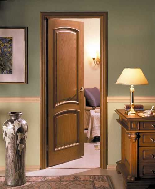 - Лучше ведут себя и в эксплуатации, и с эстетической точки зрения, изделия из натурального дерева. Деревянные изделия – вечная классика. Испортить внешний вид такой двери может только неверно подобранное обрамление, поэтому хорошо, если и наличники, и плинтуса были выполнены из той же породы дерева (фото).