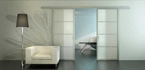 Производители евродверей используют раздвижные системы, которые являются популярными в настоящее время. Она легко устанавливается, экономит свободное пространство. Межкомнатные двери из алюминиевого профиля прекрасно вписываются в дизайн помещения. Раздвижную систему используют также для вида евродвери «гармошка», которая состоит из двух полотен. Ее используют для кладовок, гардеробных и прихожих.