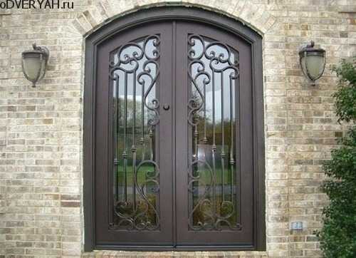 - Благородство хрупкого стекла. Двери со стеклом могут быть усилены изящными коваными решетками.