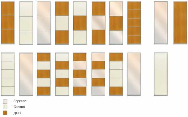 Основные варианты расстекловки раздвижных дверей (далеко не все):
