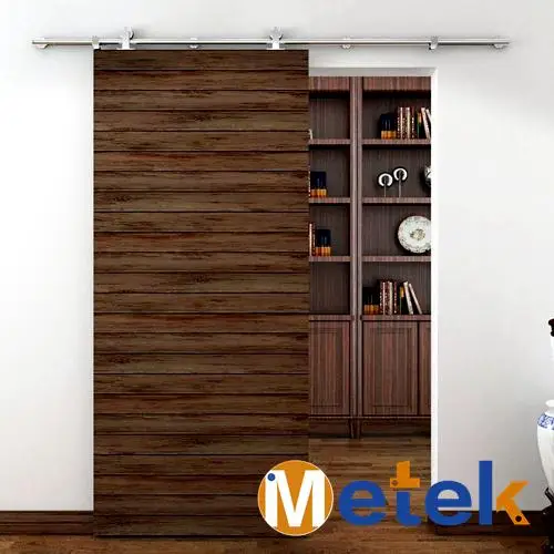 Главной особенностью дверей навесного типа, устанавливаемых в помещениях, является их конструкция. Створки этих дверей отодвигаются в одну или две стороны, перемещаясь по рельсу верхней направляющей. Эти двери все время пребывают в подвешенном состоянии, задвигаясь и раздвигаясь вдоль одной из сторон проема или прячась в специальную нишу внутри стены. Сама направляющая может быть закреплена на потолке, на стене или на верхней части проема двери.