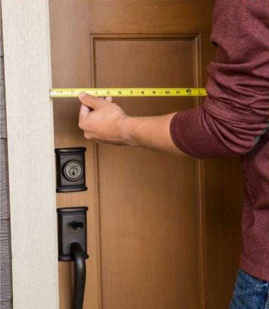 - Глубина посадки — это толщина торцевой части двери. Ее измеряют с помощью рулетки.