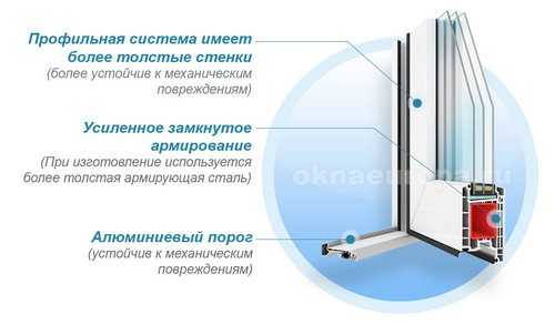 Более надежной дверь делают находящиеся внутри нее ребра жесткости. По сравнению с оконной конструкцией дверь является более защищенной, так как выполняется из металла и рассчитана на многократные циклы открывания.