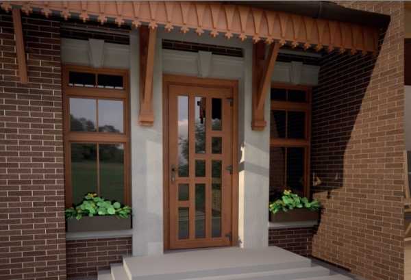 - Входная дверь со стеклом хорошо украшает фасад дома.