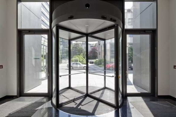 - В устройстве карусельного типа створки вращаются вокруг оси, установленной в центре проема двери. Изделия не подходят для частного жилищного строительства и используются на проходных крупных предприятий, в гостиничных комплексах.