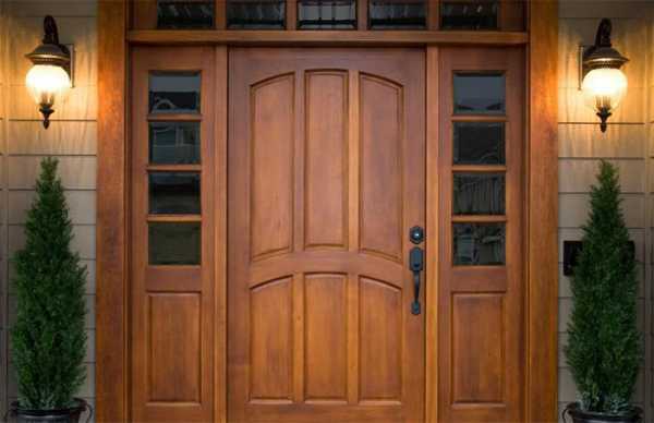 Для создания деревянных входных групп оптимальны прочные и благородные сорта древесины (дуб, бук, лиственница, кедр, сосна). Важны при выборе дверей дизайн, тепло и звукоизоляция, пористость сырья, простота материала в обработке.