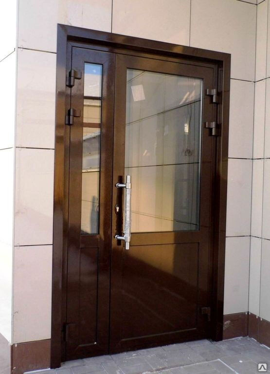 Теплоизоляционный профиль таких дверей содержит дополнительные полиамидные термовставки. Для повышения теплоизоляции конструкция оснащается двухкамерными и энергосберегающими стеклопакетами, а также доводчиком.