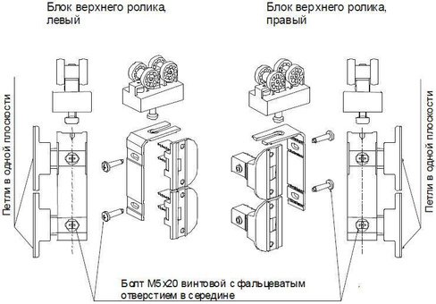На представленной ниже схеме представлен механихм межкомнатной складной двери с двумя ламелями.