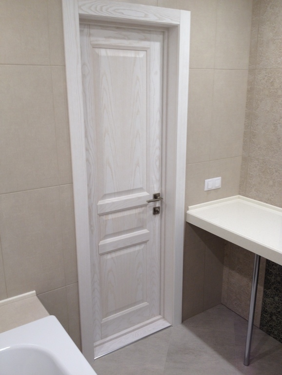 Двери в ванную комнату изготовлены из влагостойких материалов с высокой шумоизоляцией.