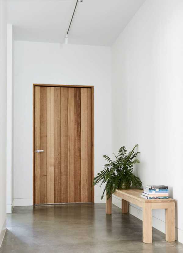 Здесь особенно часто применяют геометричные простые входные матовые или глянцевые конструкции из практичных материалов с минимальным количеством отделки.