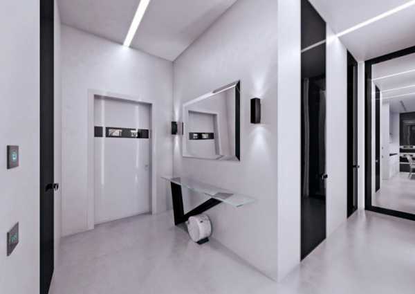В квартирах многоэтажек прихожая небольших размеров. Отсутствие естественного света делает ее еще теснее. Пространство коридора можно визуально расширить. В этом поможет светлая отделка и белое полотно. Это визуально сделает коридор светлее и шире. Если не загромождать прихожую темной мебелью, а на стенах повесить большое зеркало, то помещение покажется вдвое больше фактических размеров.