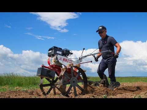 Средним мотоблоком (6-9 л. с.) с шириной захвата 0,9 м легко справиться с участком до 1 га. При использовании тяжелой машины (9-12 л. с.) с шириной захвата 1 м можно вести работы на 4 га.