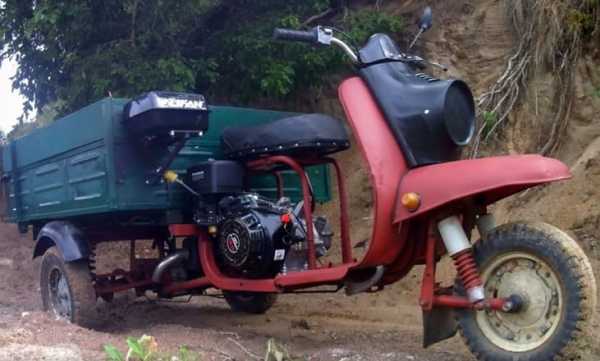 Если сломался старый велосипед, скутер или мотоцикл, не стоит сдавать технику на металлолом. Также не нужно спешить с покупкой нового мотора. Его можно заменить на силовую установку от легкого мотокультиватора. Есть только 1 ограничение: на такой машине нельзя передвигаться по дорогам общего пользования. Но мотороллер Муравей с двигателем от мотоблока можно использовать на даче для поездок на поле или речку. Двигателя мощностью 5-6 л.с. вполне хватит для того, чтобы разогнать мопед до скорости 50-60 км/ч. Перед монтажом движка на велосипед необходимо установить на это средство передвижения усиленные колеса, способные выдержать вес до 100 кг.