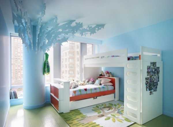 Мало кто может обеспечить своим детям отдельные комнаты для сна и игр. Поэтому, занимаясь оформлением детских, каждый родитель старается совместить все эти зоны в имеющемся помещении. И одним из важных и обязательных вопросов в этом случае является грамотное расположение мебели в спальне. Также следует учитывать, что в отличие от взрослых малыши вряд ли по достоинству оценят пусть стильный и элегантный, но скучный дизайн, что немного осложняет задачу.
