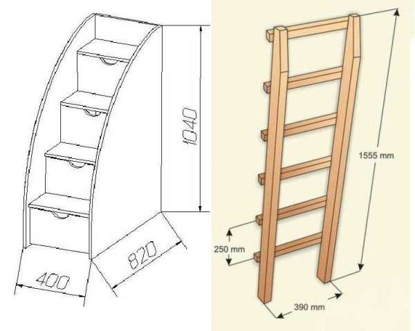 Чертеж лестниц для двухуровневых кроватей