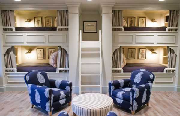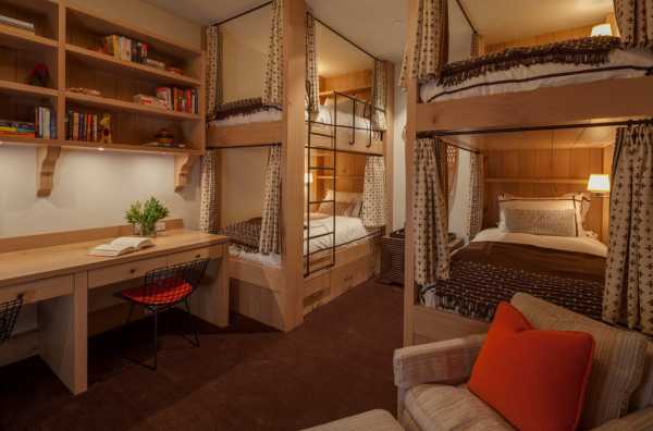 Уютная комната с двухъярусной кроватью и грамотной системой освещения (проект Knudson Interiors)