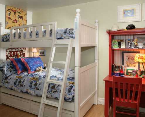 Роскошная двухъярусная кровать для маленькой спальни (проект Karen White Interior Design)