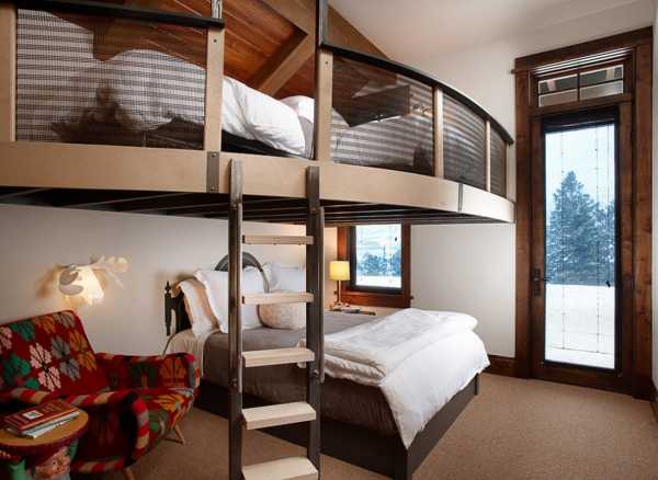 Идея двухъярусных кроватей быстро набрала популярность, и дизайнеры смело шагнули дальше. Они предлагают новый способ зонирования пространства: спальное место или зону отдыха обустроить «под потолком».