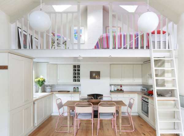 - Сделать кабинет или спальную зону наверху, а под ней расположить обеденную и гостиную. Добавить в интерьер уюта помогут симпатичные светильники с мягким светом;