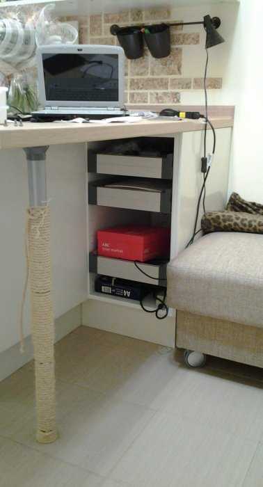 Спальное место практично совмещать с ящиками для хранения или низкими тумбочками, если, конечно, позволяет площадь верхнего яруса.