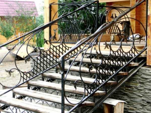 Площадка и ступени оформляются деревянным покрытием или же каменными плитами, что придает ему наиболее законченный вид. Декорирование производится различного вида краской и коваными деталями.