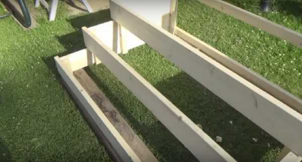 Далее соединяем боковины в нижней части основания с помощью трех брусков, которые склеиваем и выдерживаем до полного высыхания с помощью струбцин, как на фото. После чего места склейки крепим своими руками дополнительно саморезами.