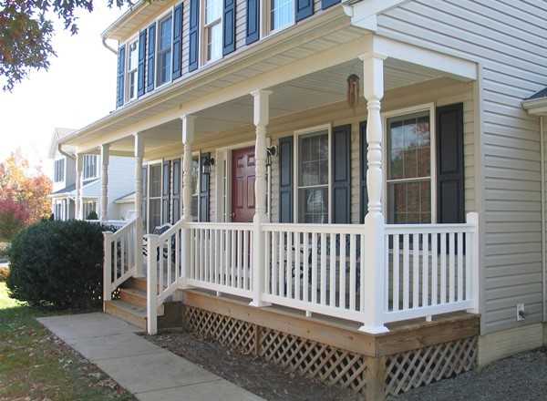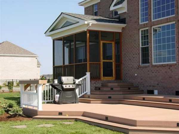 Фото парадного крыльца частного дома. Совмещение с верандой
