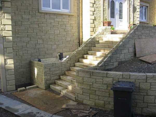 Коробчатую конструкцию крыльца крепят к поверхности стены дома с помощью эластичного клея, непосредственно к поверхности фундамента крыльцо обычно не крепят.