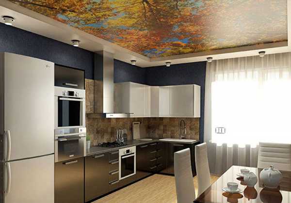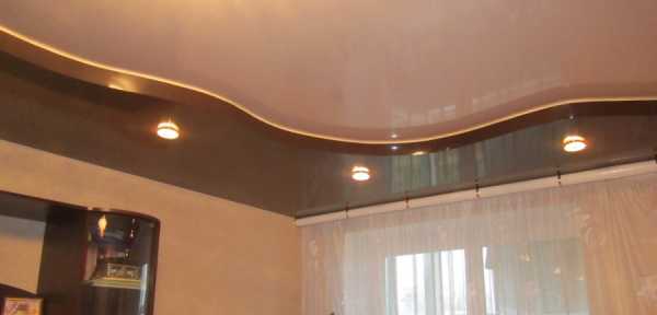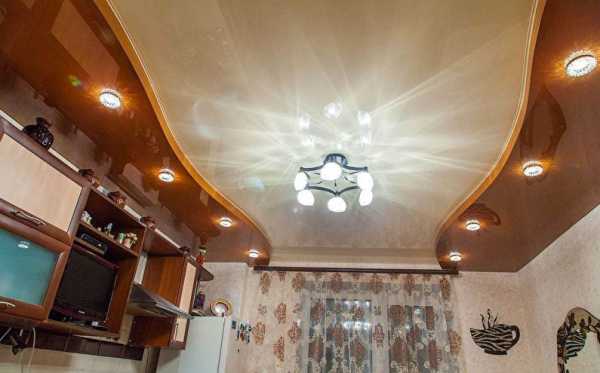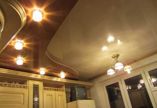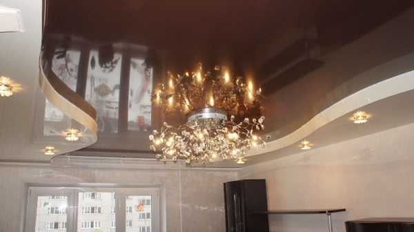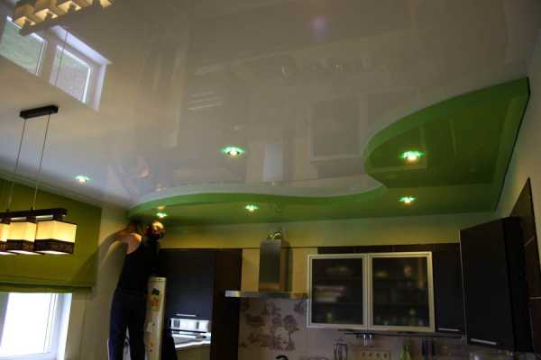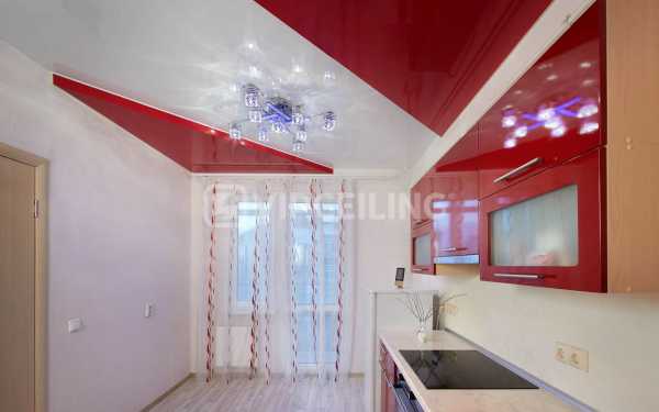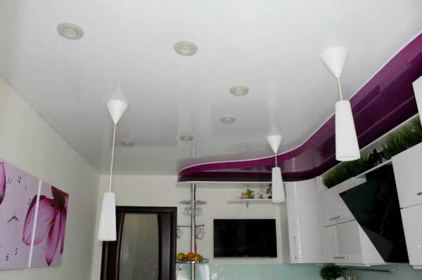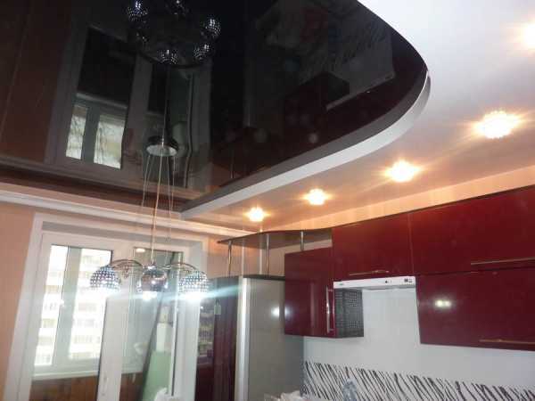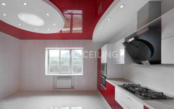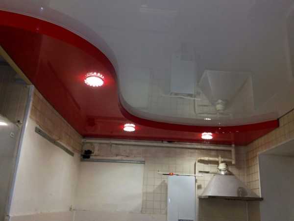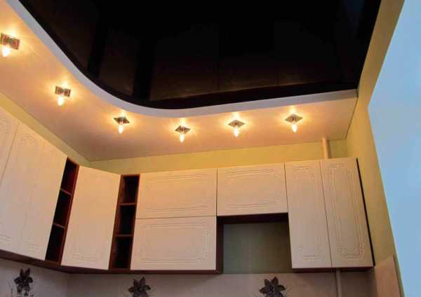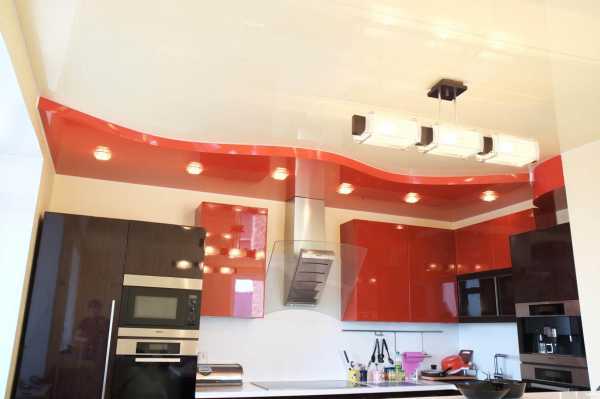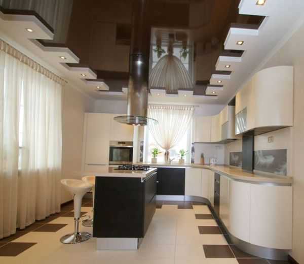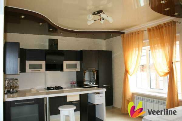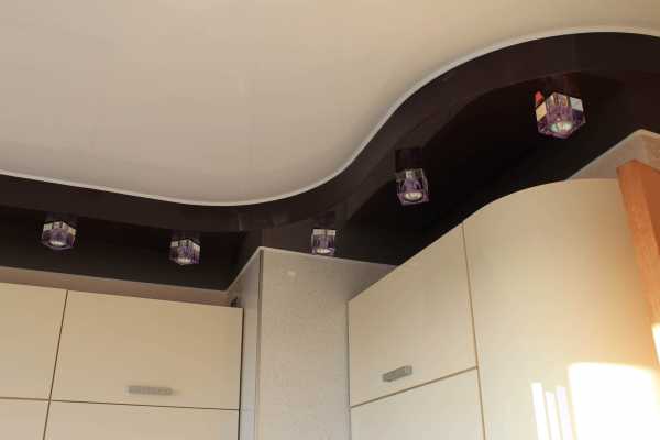 Двухуровневые натяжные потолки на кухне