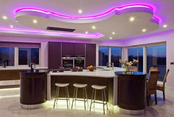 - разнообразие светового сценария — дополнительные уровни потолочной конструкции могут быть использованы для размещения на них разнообразных источников освещения и построения необычных световых эффектов;