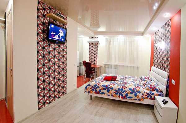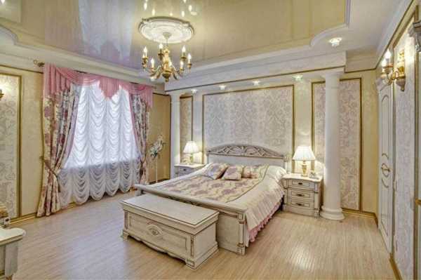 - увеличение масштаба комнаты — на фото подмечено, что натяжные двухъярусные потолки здорово работают на видимое увеличение помещения в высоту — но только не в случае с очень скромными по размерам комнатами;