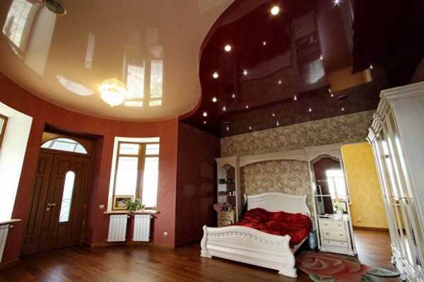 Двухуровневые натяжные потолки в спальне