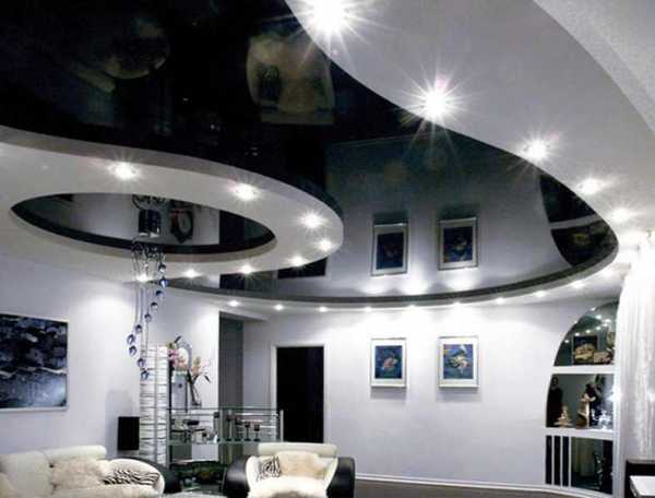 Двухъярусный натяжной потолок фото – варианты в стиле «классика» для зала, 2 уровня с подсветкой, современные дизайнерские решения двух уровненных моделей
