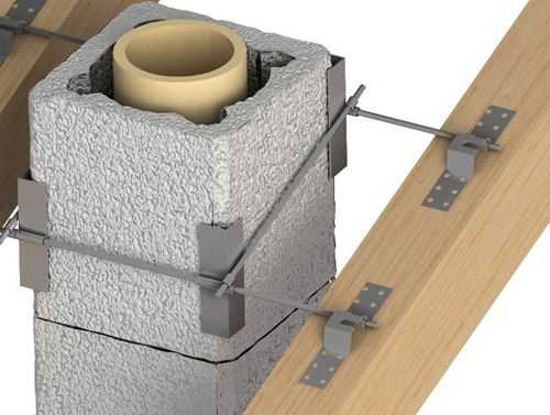 Нельзя устанавливать стыки элементов в местах прохода через перекрытия. Именно поэтому так важно изначально иметь план дома, чтобы подобрать подходящие размеры и последовательность элементов. Если труба устанавливается отдельно, без сэндвич-короба, ее необходимо крепить к жестким конструкциям хомутами через 1-1,2 метра, а над поверхностью крыши – с помощью растяжек из проволоки или шпилек.