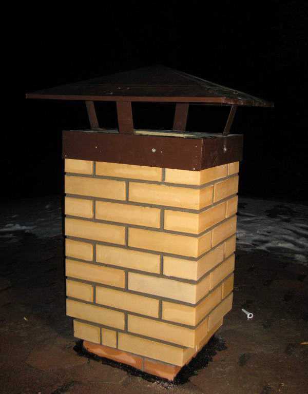 (Пример прямоугольной шейки дымохода из кирпича.)