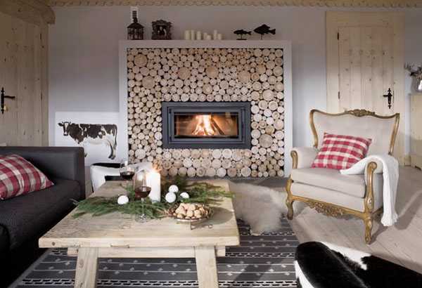 Камин в интерьере шале.