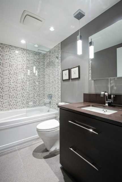 • Крупная керамическая плитка визуально расширяет пространство.