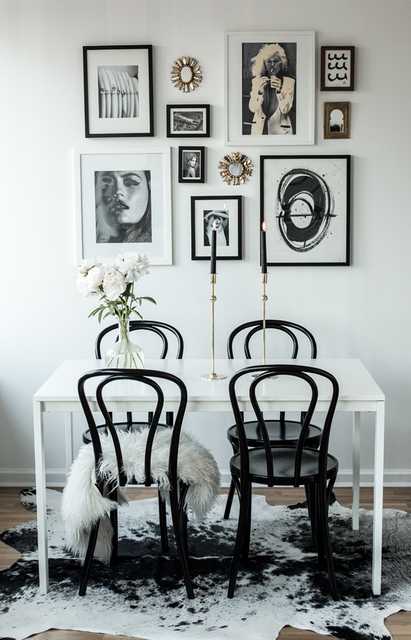 Привычный декор: картины, вазы, инсталляции, статуэтки — пожалуйста, но в меру. Не загромождайте пространство, ведь мы пытаемся создать стильный интерьер, а не лавку старьевщика.