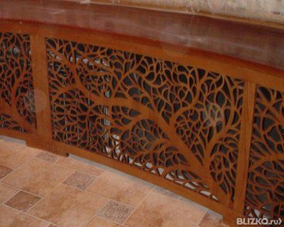 Безусловным лидером является дерево. Природная структура, красота, аромат и эстетика делают этот материал вечным. После того, как экран изготовлен, обязательно покрывайте его специальными составами. Если этого не сделать, даже дерево промышленной сушки от длительного контакта с горячей батареей начнет деформироваться и терять первоначальную форму.