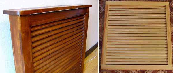 Куда более эффектно смотрится деревянный декоративный экран. Его можно установить так же легко, как и металлический, купив готовые изделия из разных пород деревьев. Но сделать своими руками его тоже реально, если есть определенные плотницкие навыки и специальные инструменты. Подобный выбор имеет как положительные, так и отрицательные стороны.