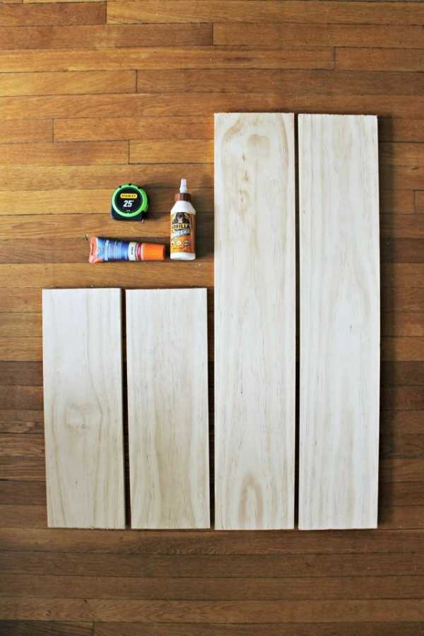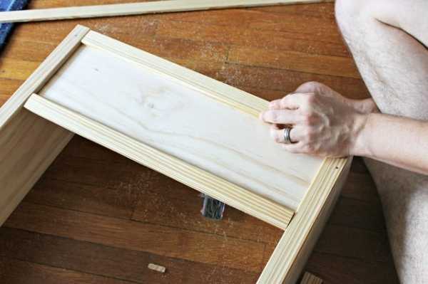 Измерьте и обрежьте рейки для украшения нижней доски со стороны фасада, как видно на фото. Эти рейки должны точно соответствовать измерениям, чтобы прямоугольная вставка выглядела аккуратно.