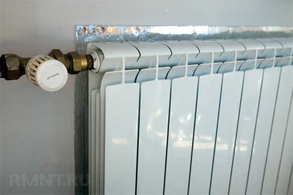 Это уже меньше того, что «вытянет» алюминиевый радиатор с профилированными каналами при ухудшенной конвекции. При светлом экране теплопередача в комнату еще ухудшится. Куда девается неиспользованное тепло? Уходит в трубу обратки, а вы за него все равно платите. Можно ли поправить дело? Да, можно. Прежде всего – дополнительным тепловым экранированием от стены.