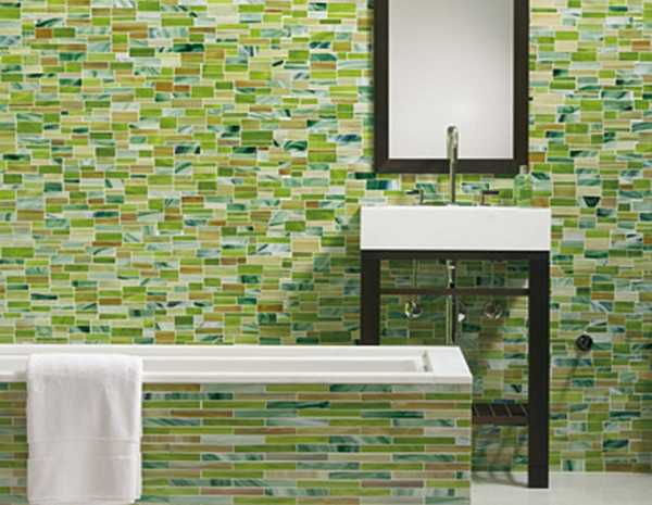 - затем на гипсокартон укладывается с помощью эластичного клея мозаика или плитка маленького размера. Расстояние между плитками или полотном мозаики регулируется монтажными крестиками.