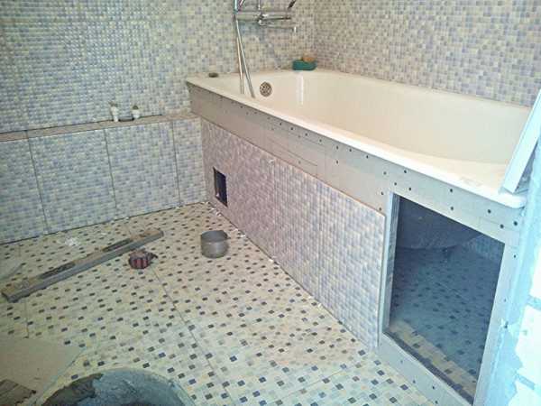 Экран под ванну из гипсокартона: облицовка основания плиткой