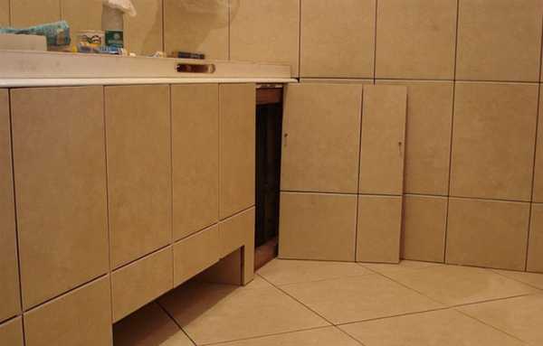 Обязательно вырежьте из готовой конструкции кусок гипсокартона, чтобы он плотно вставлялся и не выпал. Прикручивать не нужно. Этот участок обеспечит доступ к трубам. Альтернативным вариантом является скрытый люк, который фиксируется при помощи магнитов.