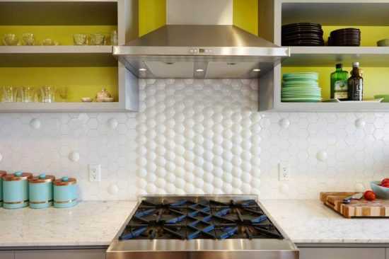 - стойкость температурам – воздух над плитой, особенно газовой сильно нагревается. Для отделки этого участка годятся только жаростойкие материалы. Экран вокруг индукционной плиты может выполняться и из МДФ, хотя это и не лучший вариант;