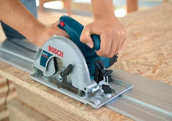 Чтобы рабочее полотно не ушло в сторону, во время работы с циркулярной пилой используйте направляющую шину