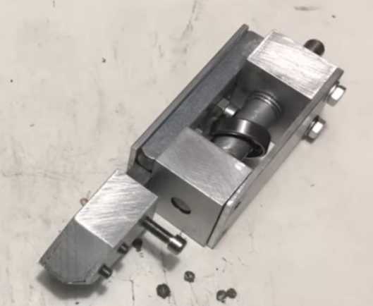 Толкатель в первую очередь – брусок, по длине больше, чем два установленных на насадке. Во-вторых, в его конструкции с одной стороны прикрепляются мелкие подшипники с помощью болтов. Их задача – создать уровень смещения большого подшипника, установленного на валу, на толкатель. Когда произойдет сборка толкателя с насадкой, большой подшипник по толщине будет располагаться между двумя мелкими.