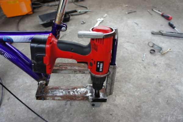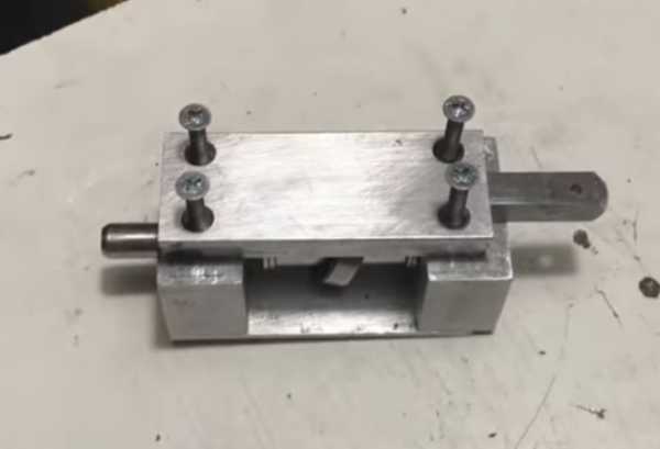 Для закрепления вала в пазу надо с торцов держателя сделать отверстие с резьбой, куда вставляется винт. Он и будет фиксировать вал в пазу и передавать ему возвратно-поступательное движение. Противоположный конец вала, он круглого сечения, будет вставлен в патрон дрели.